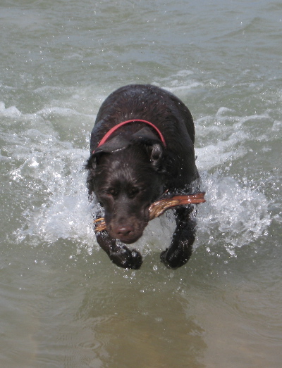 Carly has beautiful conformation and a loving temperament. She is a balanced girl, beautiful front assembly and nicely angled rear, level topline, wrapped tail right off the back and sets it all off with a pretty head piece, excellent pigment and eye color and correct coat. A strong retrieve drive and keen interest in birds, she is a great little retriever. Carly enjoys being around people of all sizes and loves romping through the fields. She doesn’t enjoy the show ring, just not her thing. BUT Carly goes Best of Breed at the UKC Carolina Classic 3/30/07 under Judge Patricia Young. That will be the end of her show career, she thinks she has more important things to do.