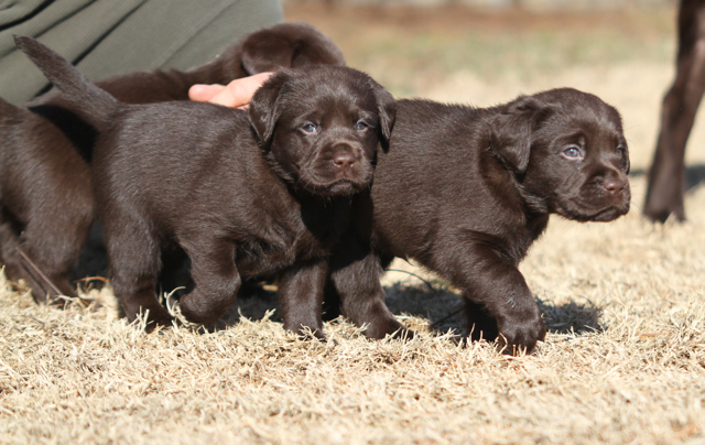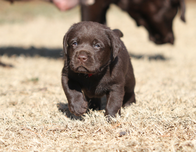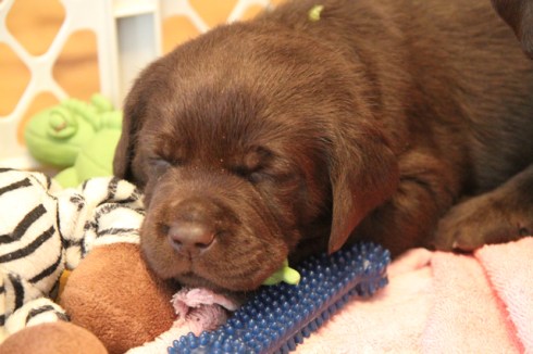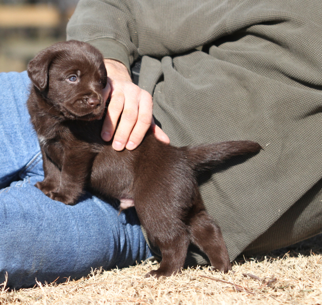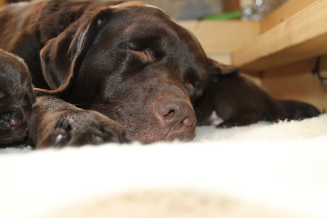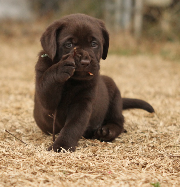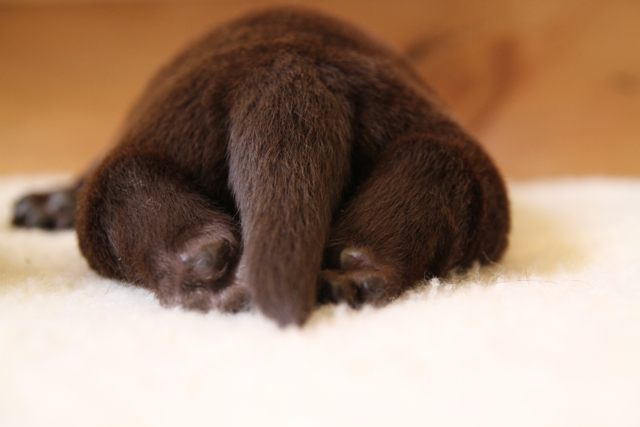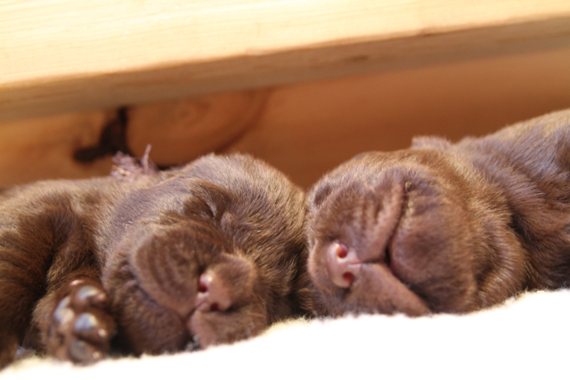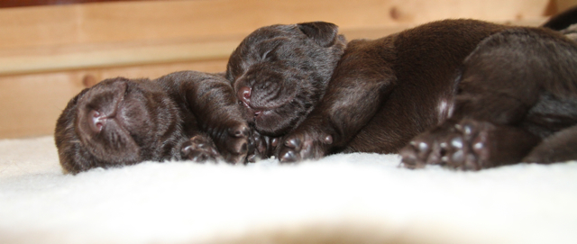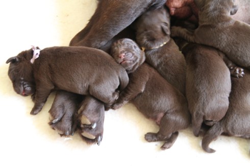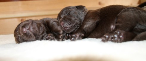 Shine puppies arrived, as expected, on New Years Eve 2011, an all chocolate litter, sired by Dauber.